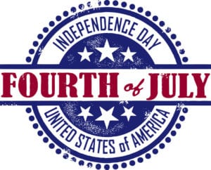 We will be close in observance of Independence Day.  We will resume regular business hours on Wednesday July 5th. We wish everyone a safe and happy Fourth of July!